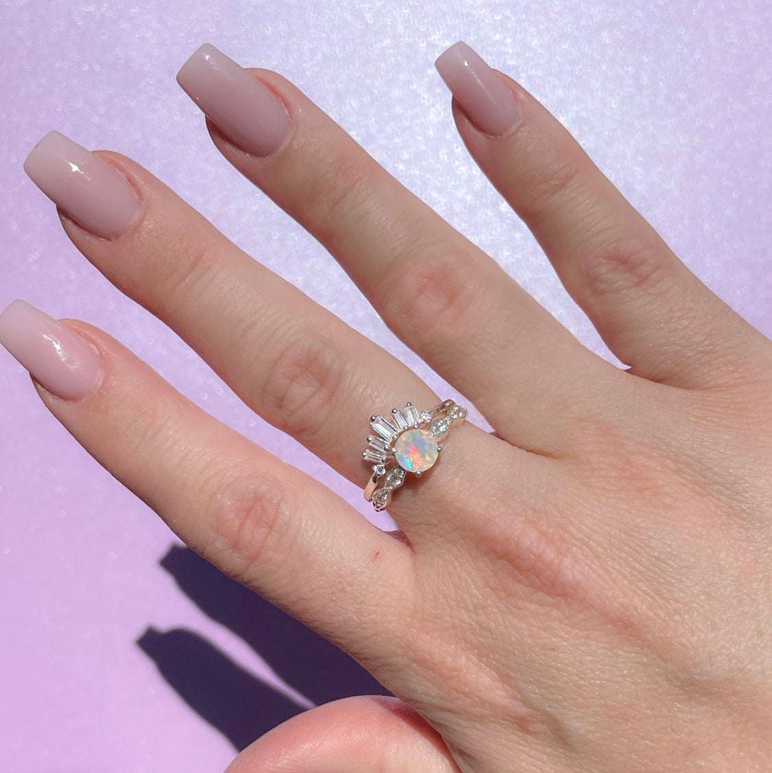 At the heart of this cosmic creation lies a magnificent opal gemstone, reminiscent of the vast and mysterious universe. Opals are renowned for their iridescent play of colors, resembling the dancing lights of distant stars against a midnight sky. Each time you glance at your "Nebula" ring, you'll be transported to a realm of celestial beauty and wonder, where dreams take flight and possibilities are boundless.