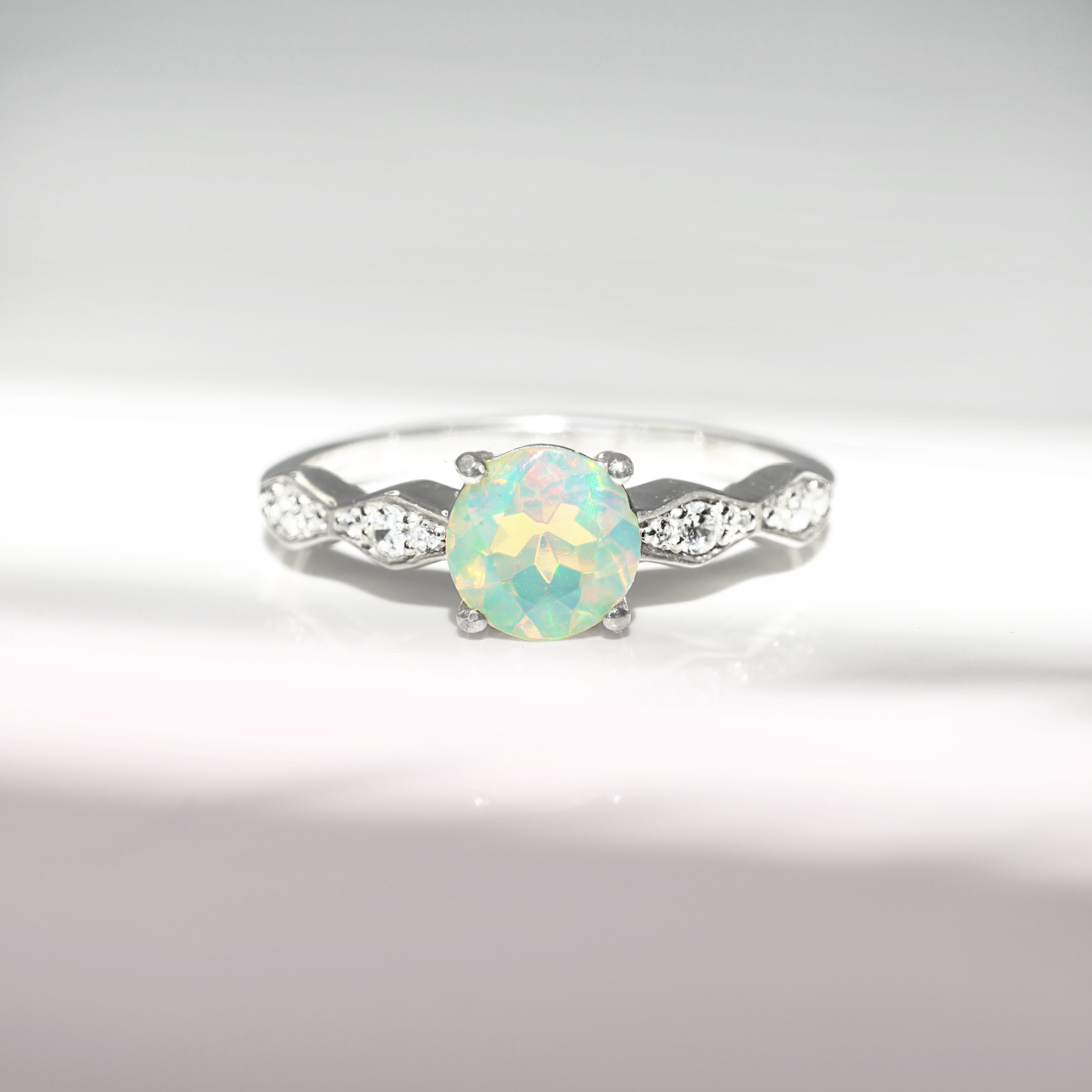 Introducing the breathtaking "Nebula" Opal and White Topaz Ring ā a celestial masterpiece that captures the essence of distant galaxies and cosmic wonders. Like the swirling hues of a nebula, this enchanting ring combines the captivating allure of opal with the sparkling brilliance of white topaz, creating an otherworldly and mesmerizing piece that is sure to leave you spellbound.